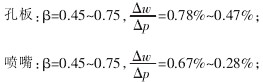 孔板:β= 0.45〜0.75,ΔwΔp= 0.78%〜0.47%;