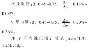 标准节流装置(孔口,喷嘴和文丘里管)和V形内锥节流装置的压力损失如下: